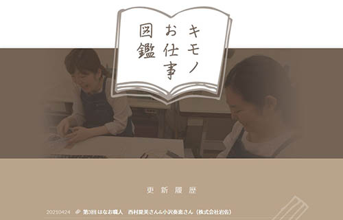 登録団体の様々な「キモノ」にまつわるお仕事とその仕事に携わる方をご紹介していきます。最新作はフェイスブックで公開!また、キモノお仕事図鑑に出てくださる方も募集しております。